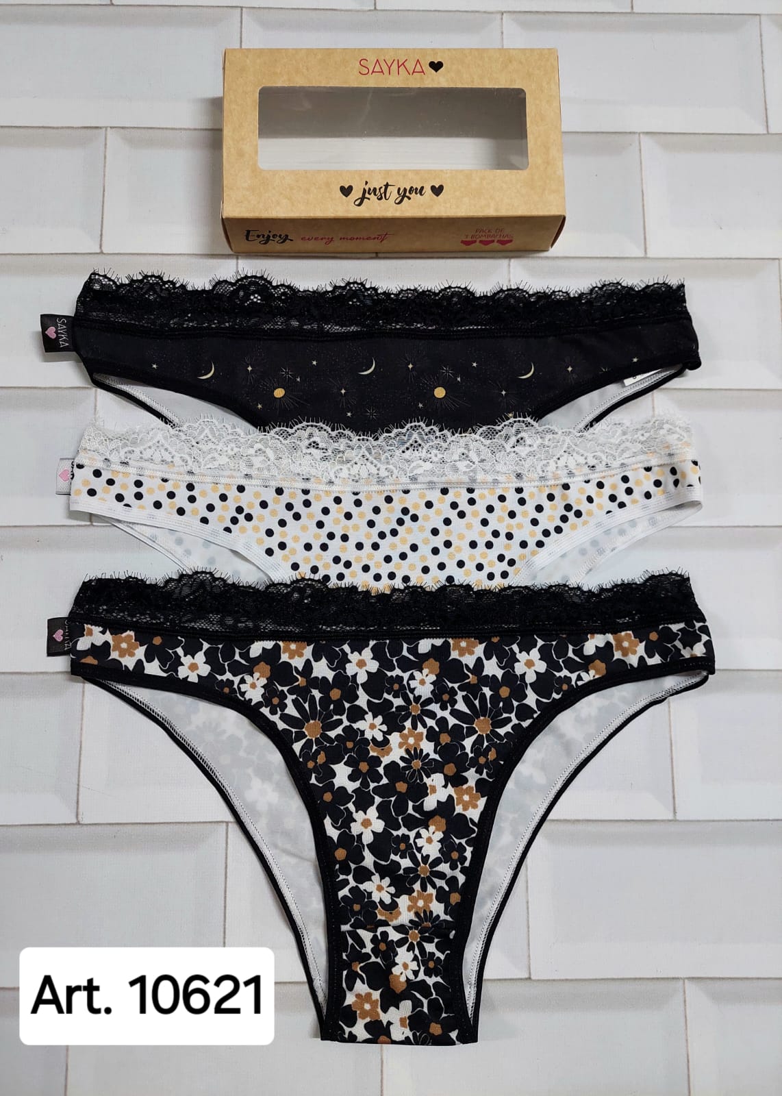 Pack x 3 unidades de vedetina estampada c/puntilla