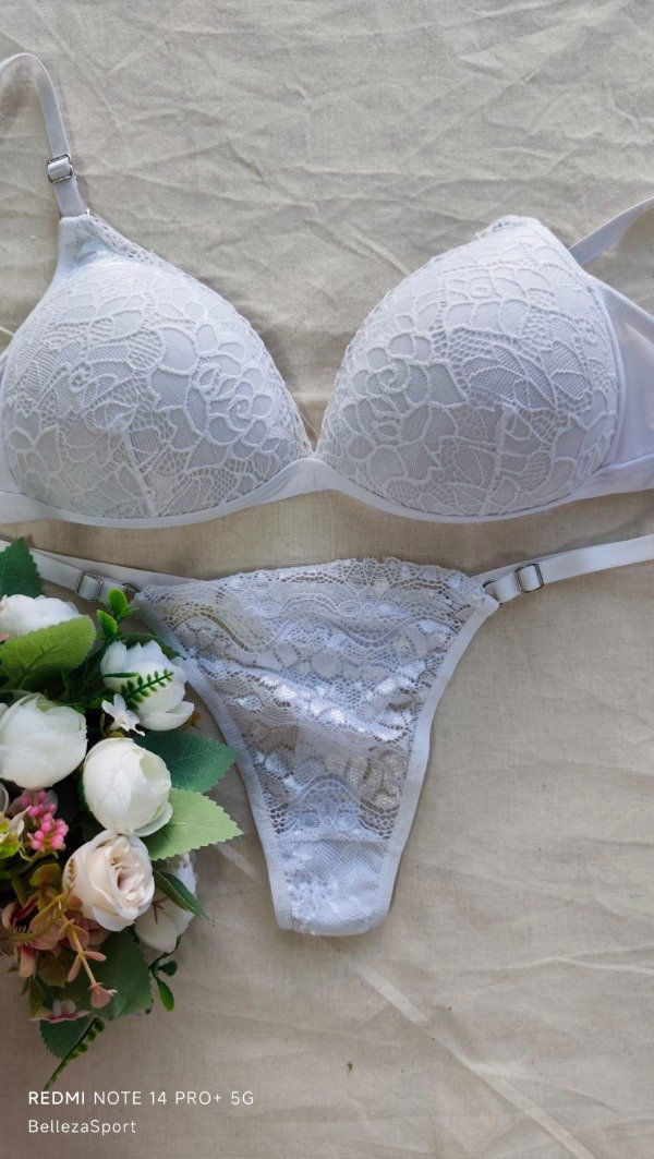 Conjunto triangulo de encaje blanco