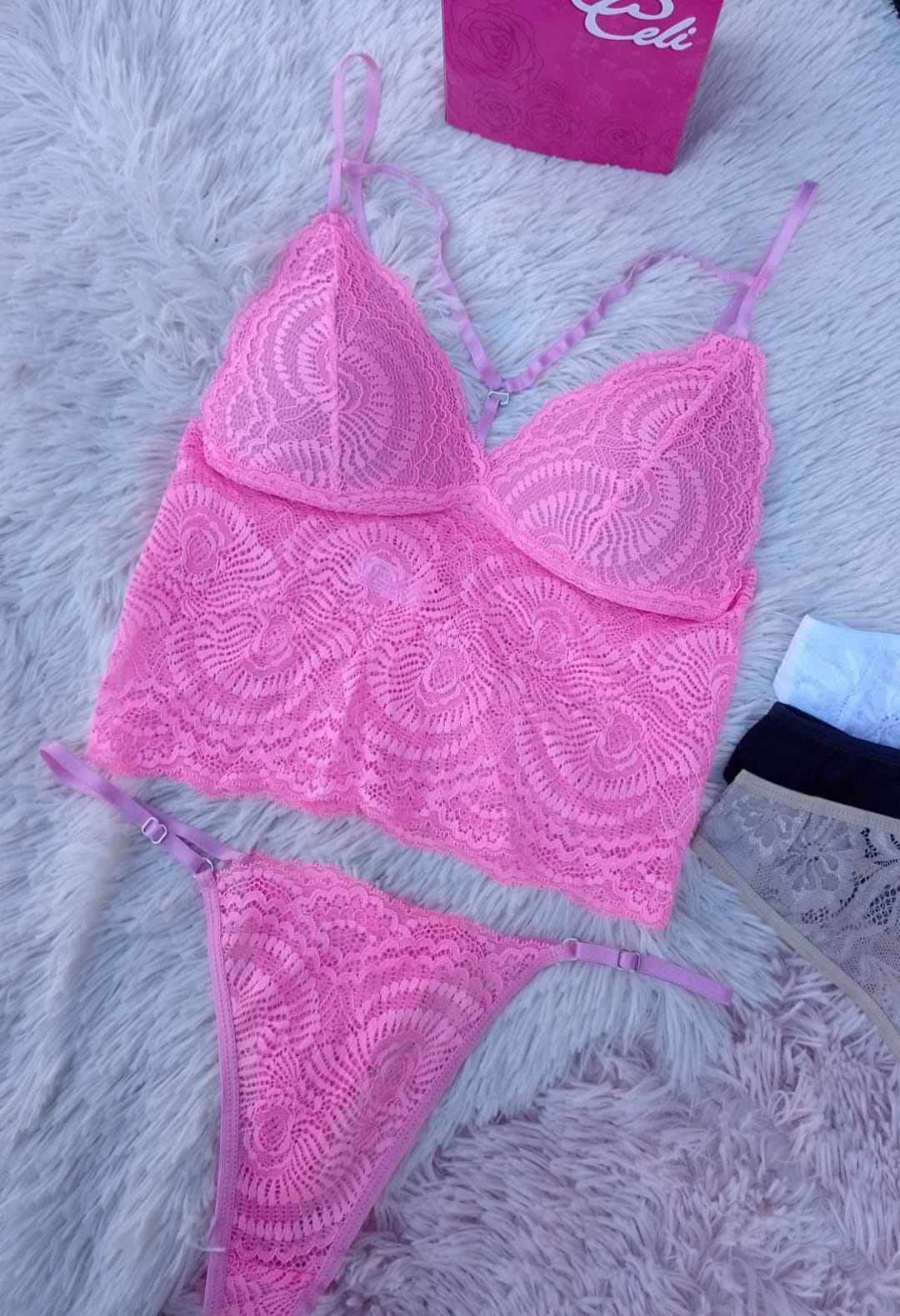 Conjunto de triangulo taza soft de puntillas top con less regulable