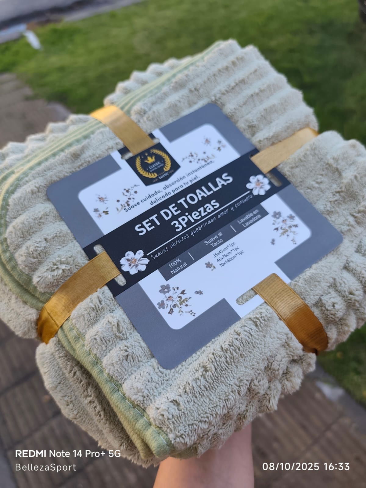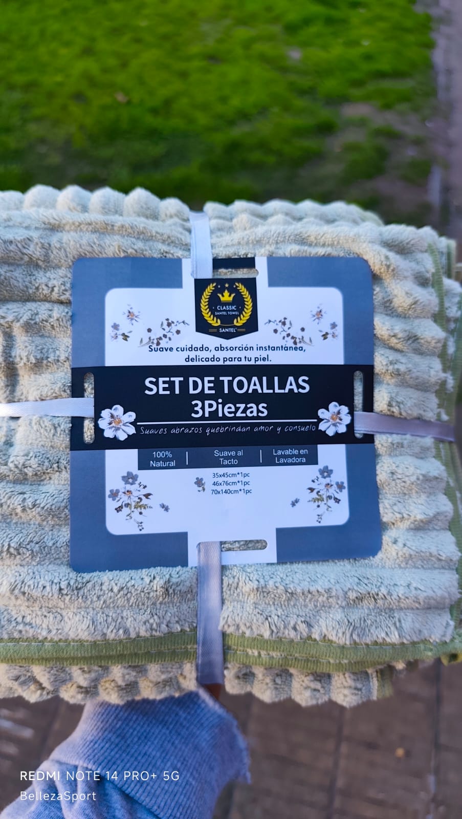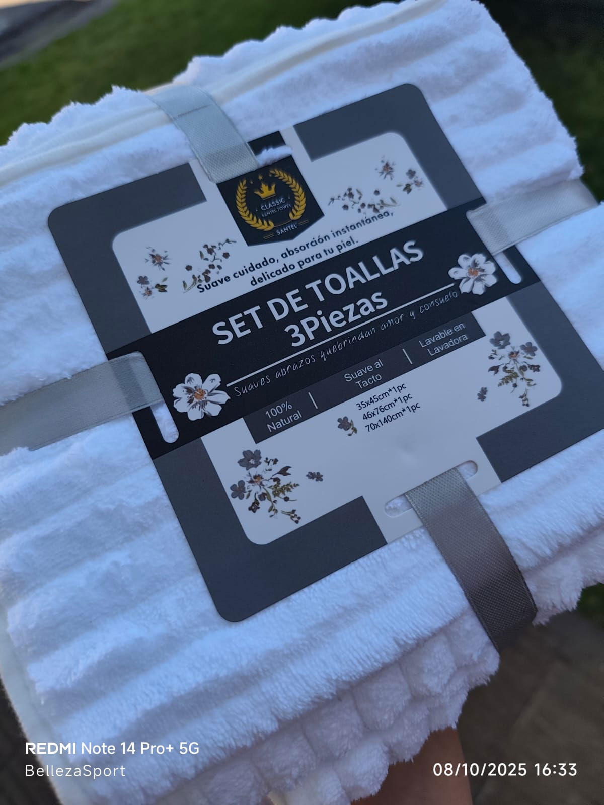 Vienen tres toallas , una de mano, una de rostro y otra de cuerpo