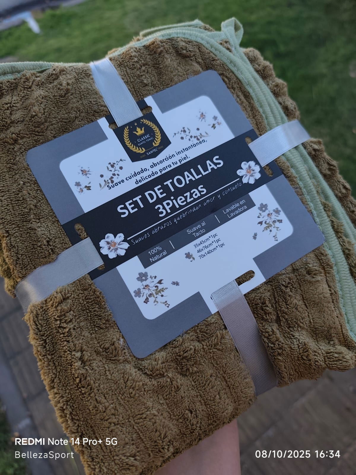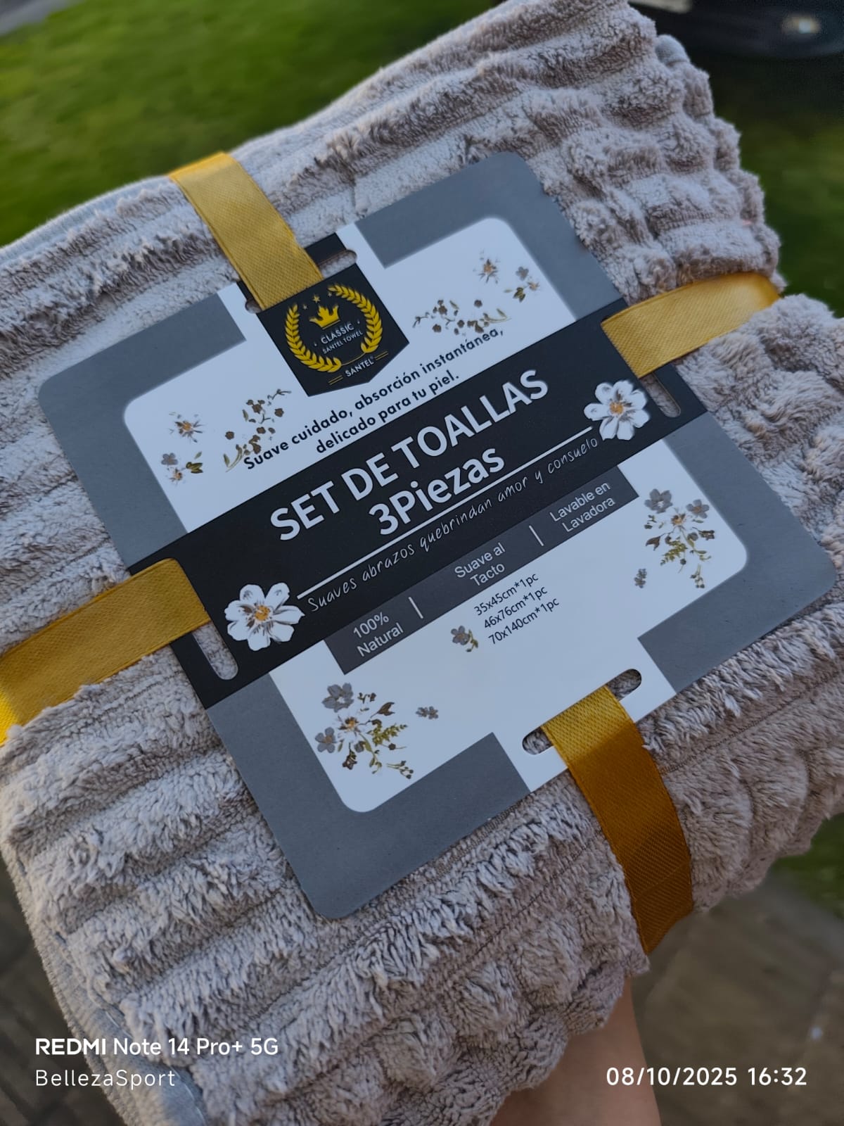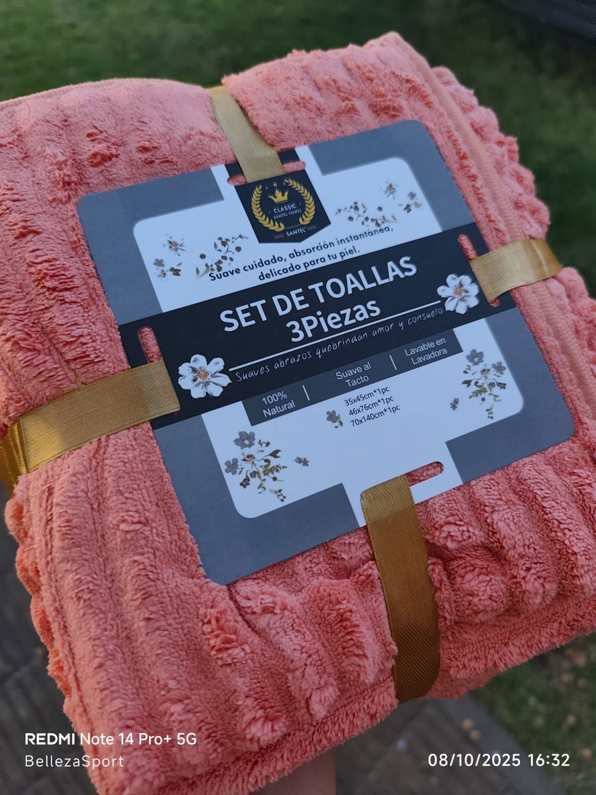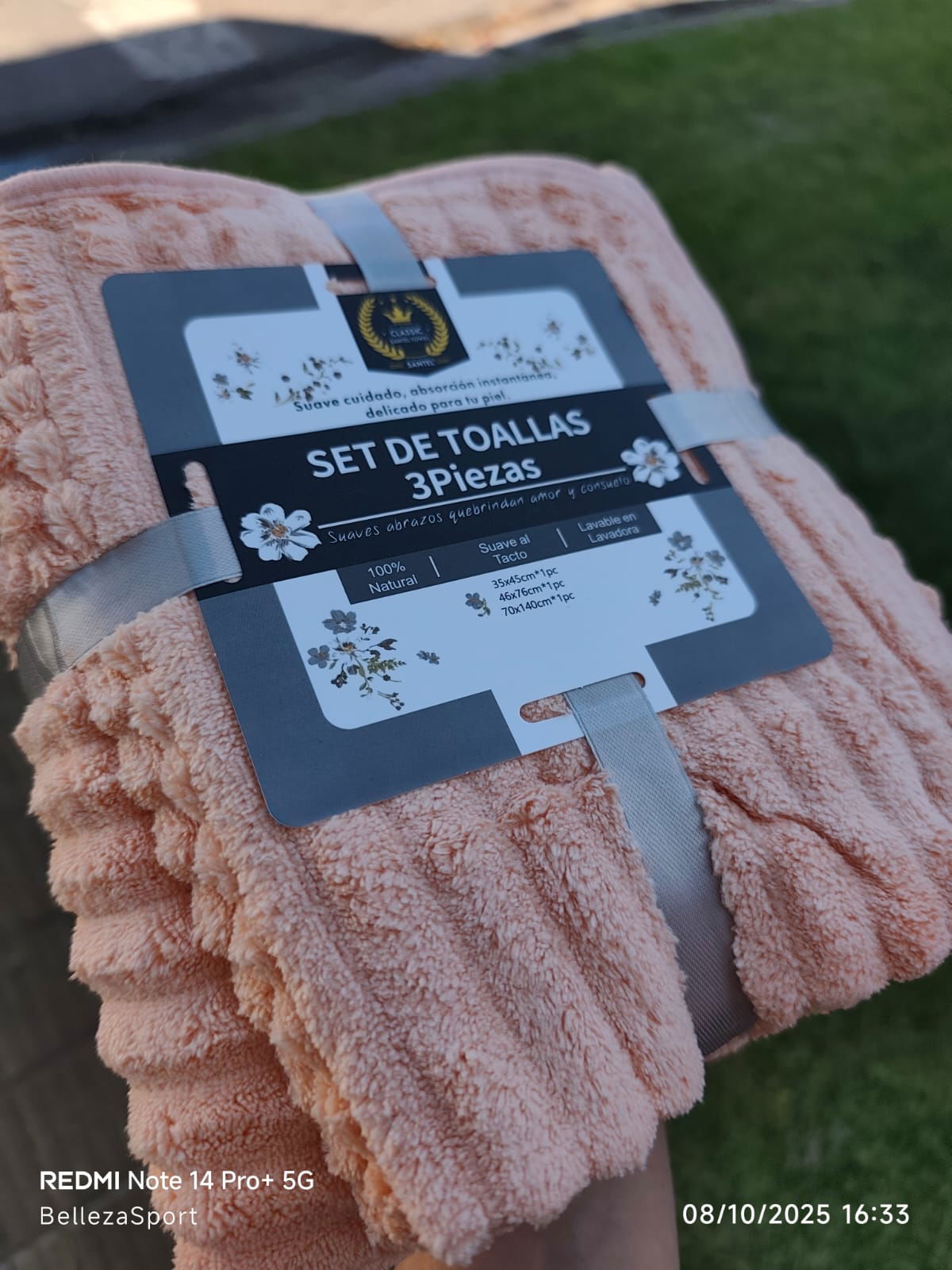 Vienen tres toallas , una de mano, una de rostro y otra de cuerpo