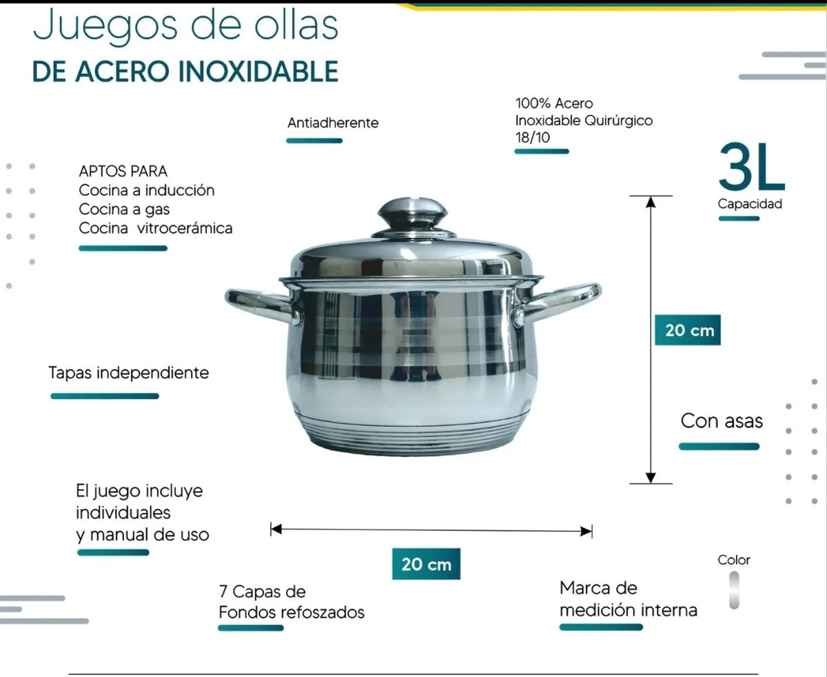 1 olla de 20 cm de diámetro de capacidad 3 litros con tapa