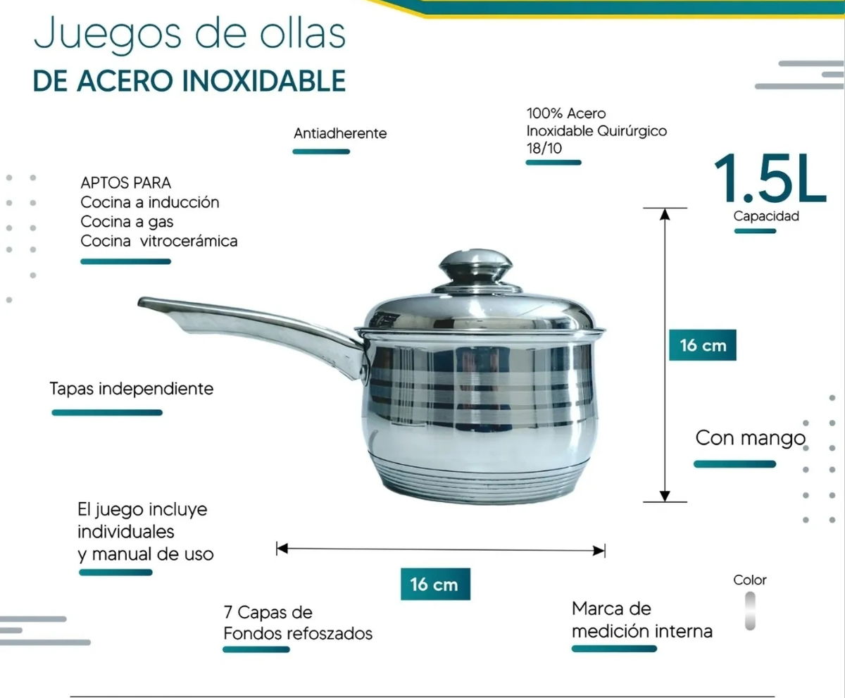 1 cacerola de 16 de diámetro de capacidad 1,5 litros con tapa