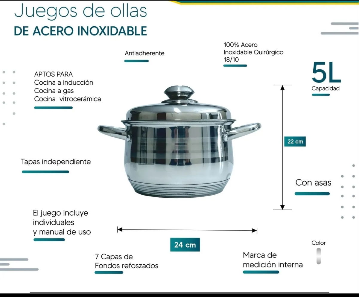1 olla de 24 cm de diámetro de capacidad 5 litros con tapa