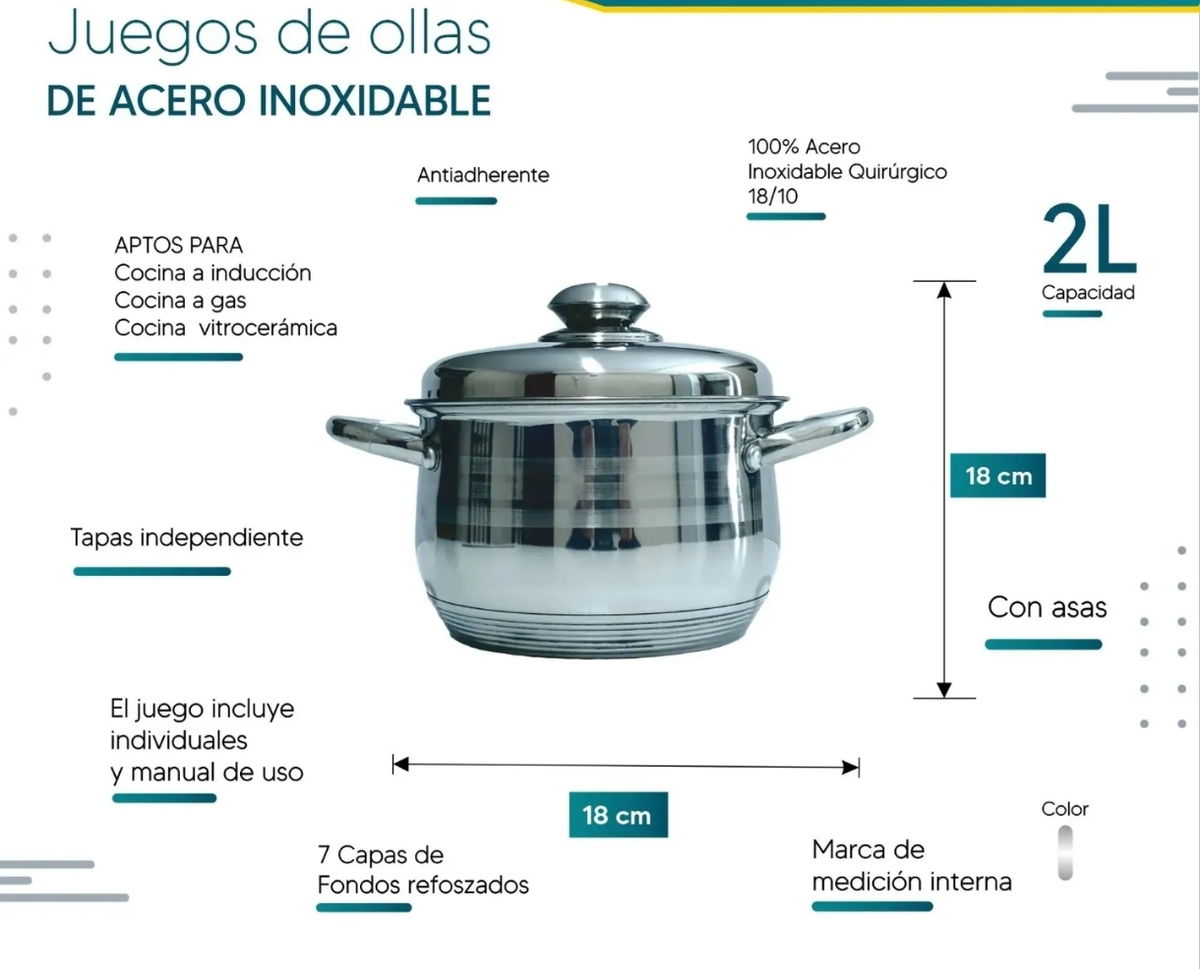 1 olla de 18 cm de diámetro de capacidad 2,5 litros con tapa
