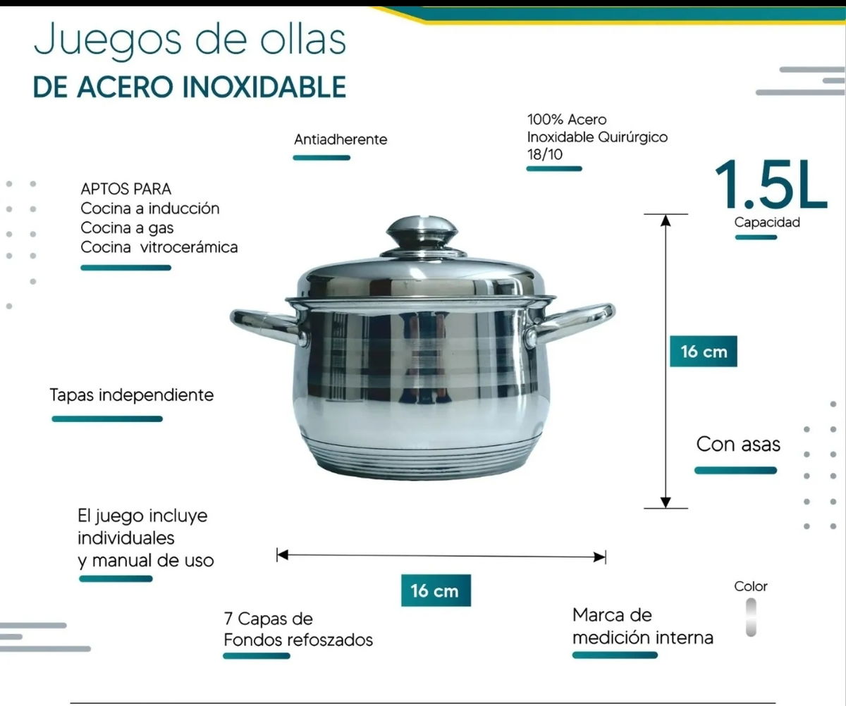 1 olla de 16 cm de diámetro de capacidad 1,5 litros con tapa